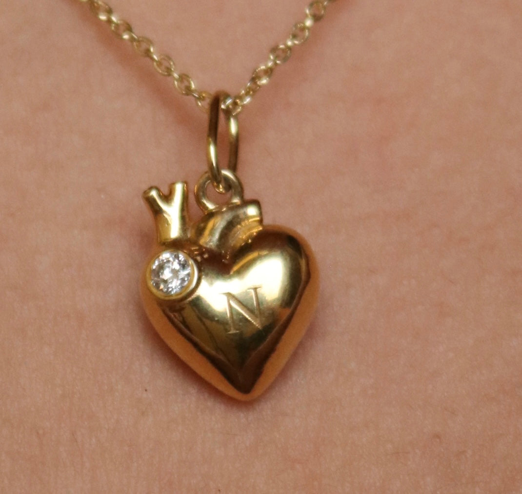 Collar en forma de corazón con cadena elaborado en oro 14k, diseñado para capturar tus momentos más significativos. Personaliza tu pieza con tu inicial grabada y selecciona la piedra de nacimiento que representa tu mes. Un regalo emotivo y duradero que refleja tu estilo personal y sentimientos más profundos.